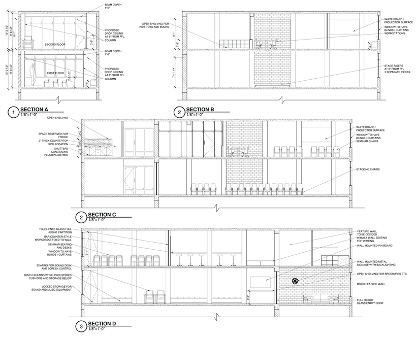 New City Delhi is a community that began with a few families and individuals meeting together with the intention of establishing a fellowship in South Delhi. A space of about 2400sq.ft. split up on two levels was selected. The first level is to be used as a meeting space for 80 people, and the second level as a co-working space with a conference room. The design incorporated modern rustic styles to bring an informal ambience to a younger user group.